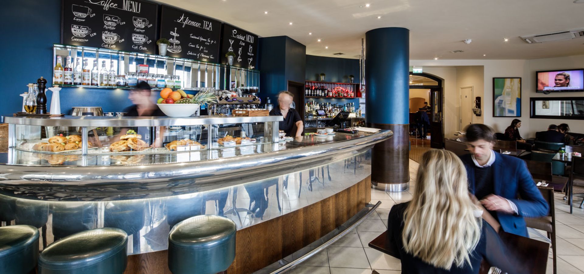 Whether relaxing with friends and family, having a business conversation or catching up on the day's news with our newspapers or free Wi-Fi, it's the ideal place to enjoy some food or a drink and catch up on some people watching.