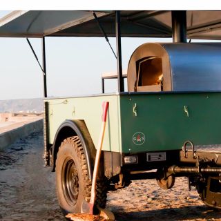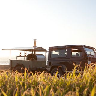 The set-up is completely mobile and captures the feeling of a cosy camp fire that we all love. The good thing is that we can go anywhere, no muddy field or beach will stop us from setting up, stoking the fire and serving our rustic pizzas.
