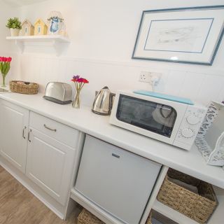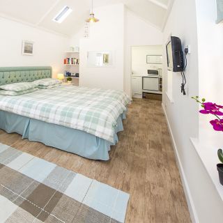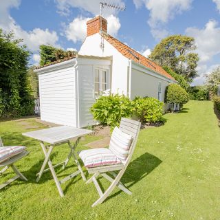 Garden Cottage is a lovely detached open plan cottage for up to two adults set in a pretty garden in the eastern parish of Grouville. The property comprises of a small sitting room that leads to a king size bedroom, that can also me made up as two twin beds. The kitchenette has a small fridge freezer and light cooking facilities.
