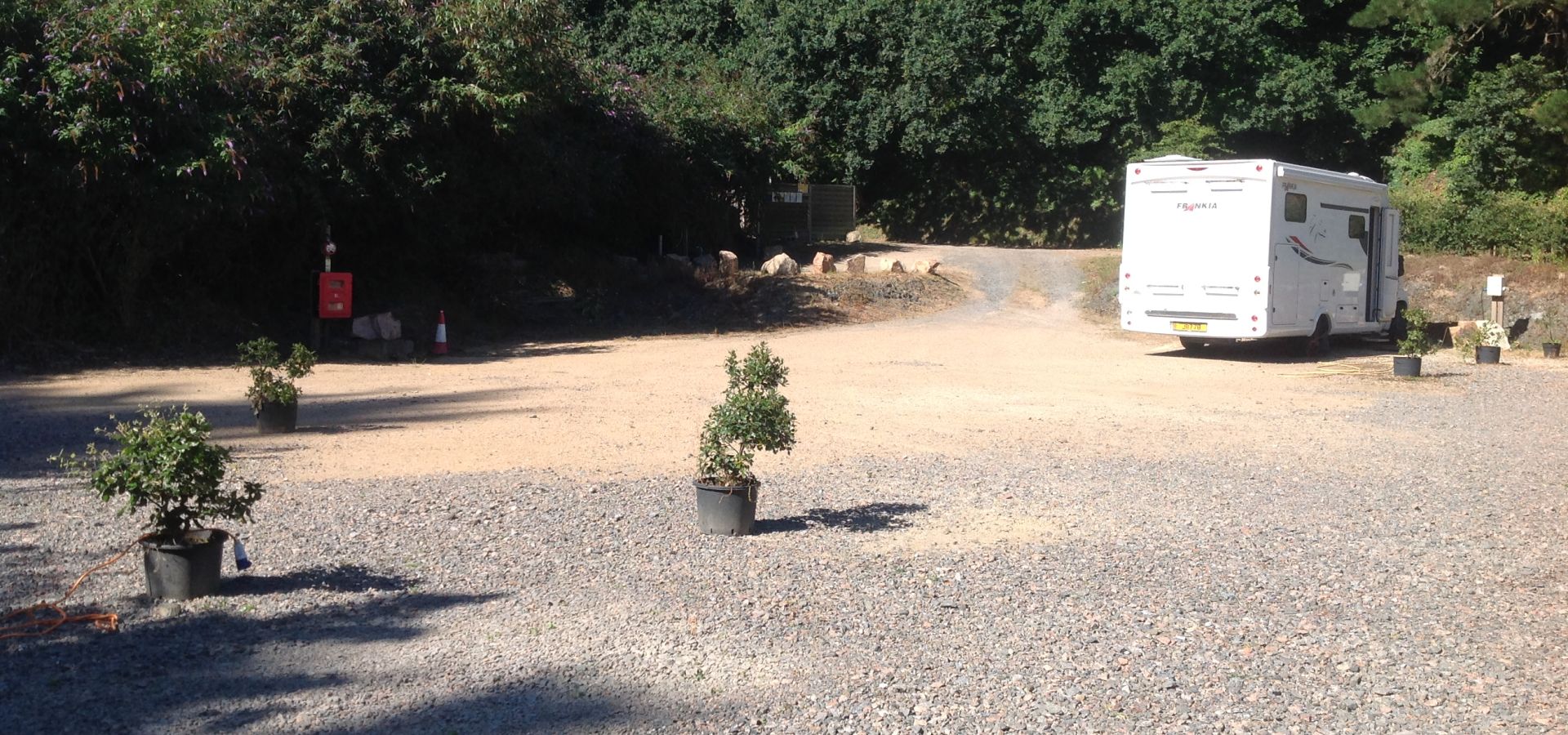 There are five large pitches, all on hard standing, with water and electricity on each pitch. Facilities for disposal of grey water and toilet cassettes are on site. All Motorhomes must have a toilet and shower on board, as there is no toilet / shower block as this is not a campsite. There is a stone recycling plant nearby, so please be aware that there may be some noise during working hours. Well behaved dogs are permitted on arrangement.