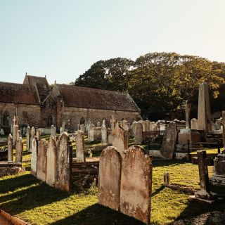 L'église paroissiale Saint-Brélade est située près de la baie animée de Saint-Brélade.