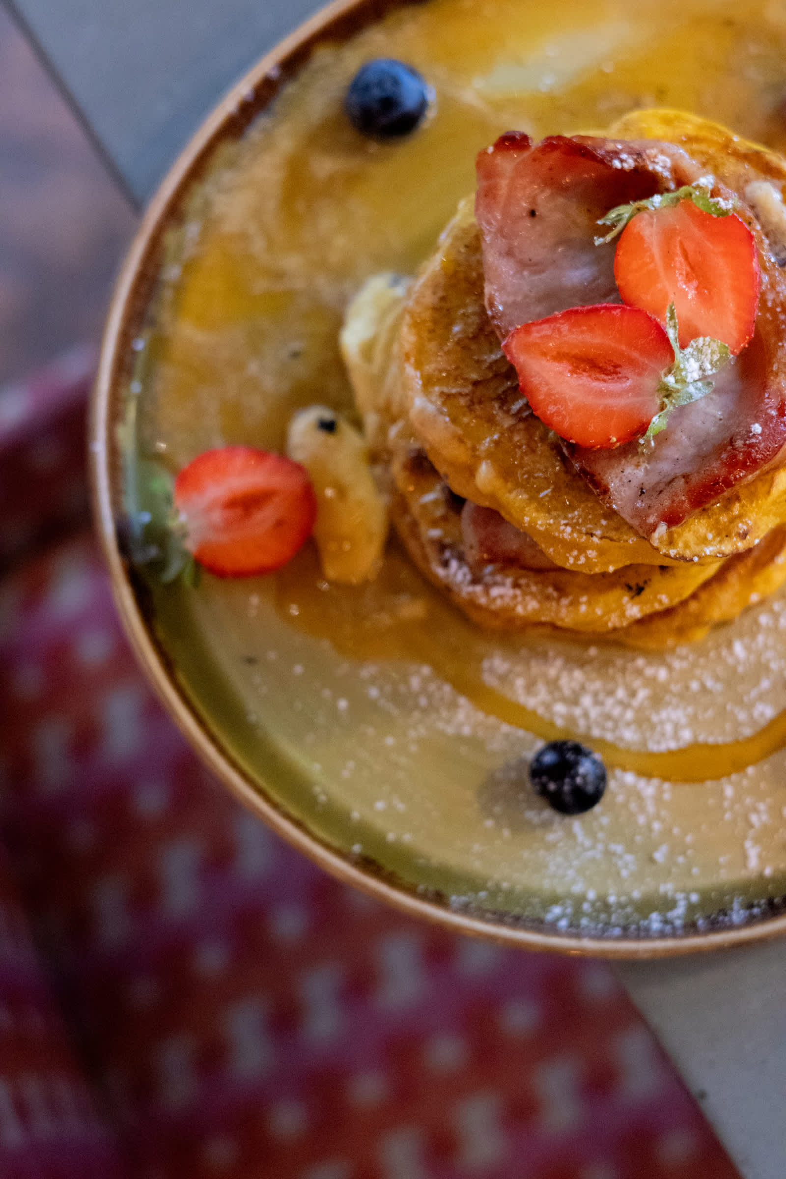 - Mix it up – Why not go halves with your travel companion? Go savoury first (think bacon and maple) then sweet for dessert pancakes.