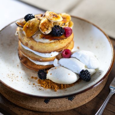 Locke’s is island-wide famous for its brunch and barista-level coffee, and its pancakes are no exception. Seasonal and always inventive, past creations have featured everything from poached gooseberries and amaretto crumble to hibiscus rhubarb, mascarpone yoghurt and house honeycomb. Pair a plate with a perfectly pulled espresso for a Pancake Day treat done properly.