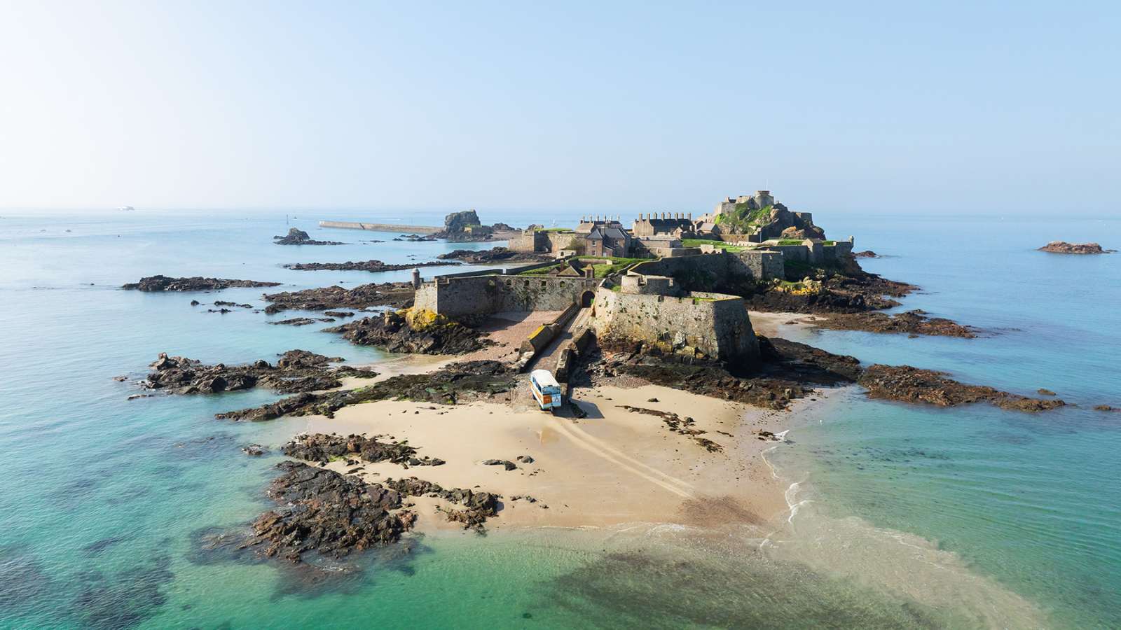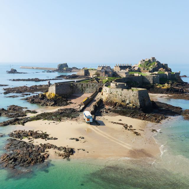Legend holds that when pirates killed him around AD 555, he had the miraculous strength to pick up his own severed head and walk to shore. The rocky hermitage where he once lived still stands today within the grounds of Elizabeth Castle and, every year on the 16 July, a pilgrimage makes its way across the sand to pay tribute.
