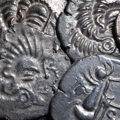 The hoard contained around 69,000 Celtic gold and silver coins, alongside gold torques, silver bracelets, rings and glass beads. Carefully lifted from the ground in one intact block, it has since been meticulously scanned, mapped and conserved. Researchers now believe it may actually be two separate hoards buried together.