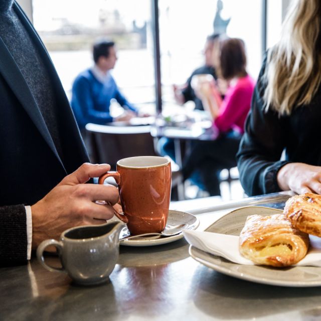 Whether relaxing with friends and family, having a business conversation or catching up on the day's news with our newspapers or free Wi-Fi, it's the ideal place to enjoy some food or a drink and catch up on some people watching.