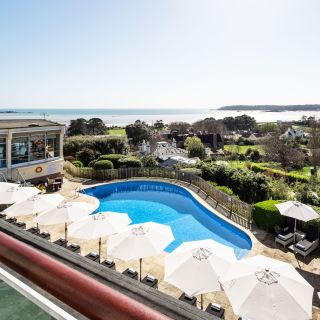The rooms in the main building have been refurbished with a modern boutique décor, some have the advantage of double aspect views. The rooms in the new wing are spacious and bright and offer balconies for relaxation. Sit back and enjoy the surroundings, fabulous views over the gardens, the pool and the entire bay of St. Aubin. Open April-October only.