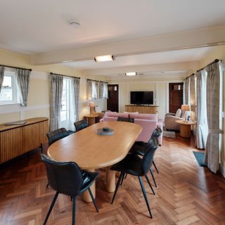 The iconic Barge Aground is uniquely positioned in the stunning St. Ouen’s Bay with direct access to the beach. Built in the 1930s, this is the last of the seaside follies and chalets which once lined the bay. The décor has a 1930s theme, with walnut wooden floors and some original furniture.