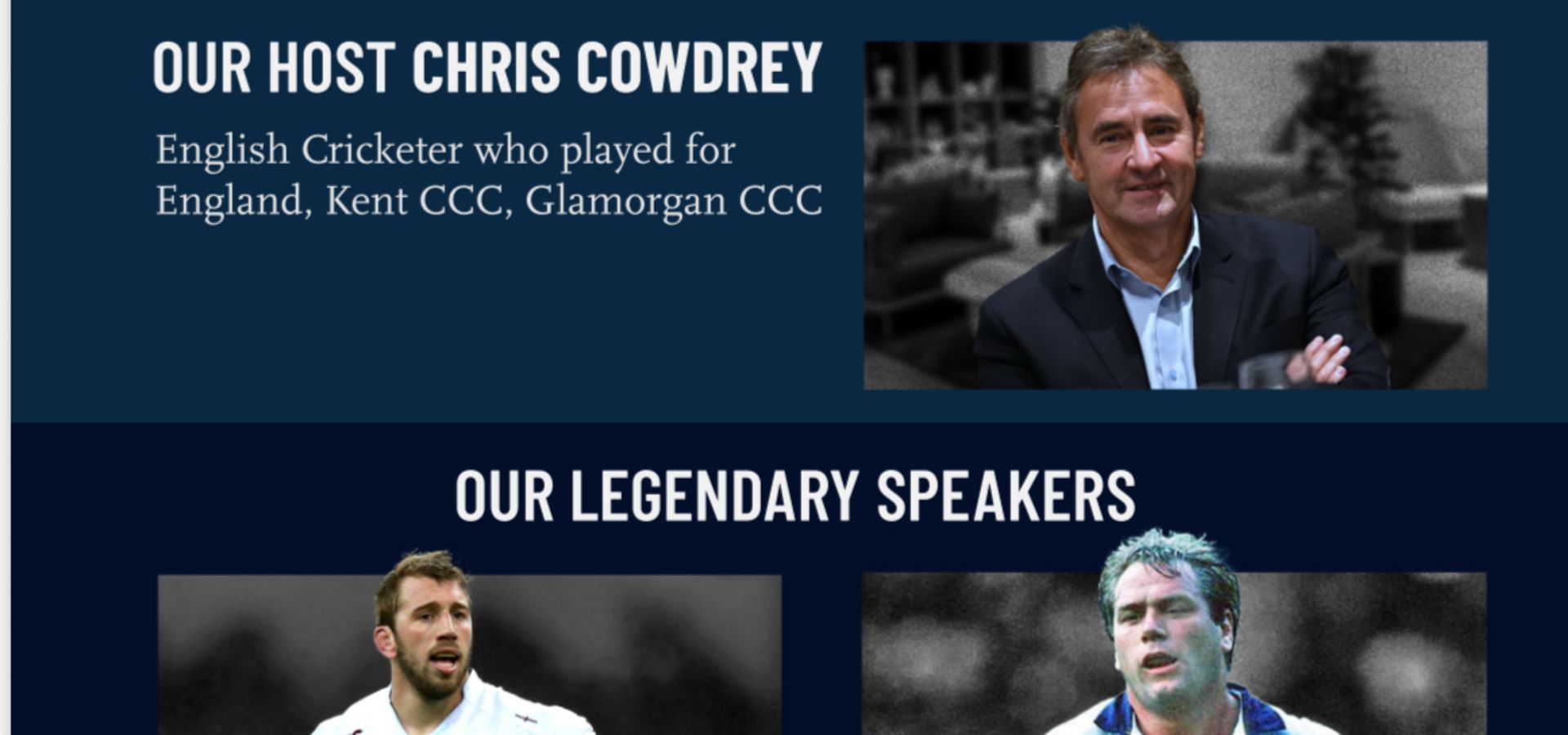 A 4-course dinner in the Crystal Room, hosted by England cricketer Chris Cowdrey and with special guest speakers and rugby legends, Chris Robshaw and Jeff Robyn.