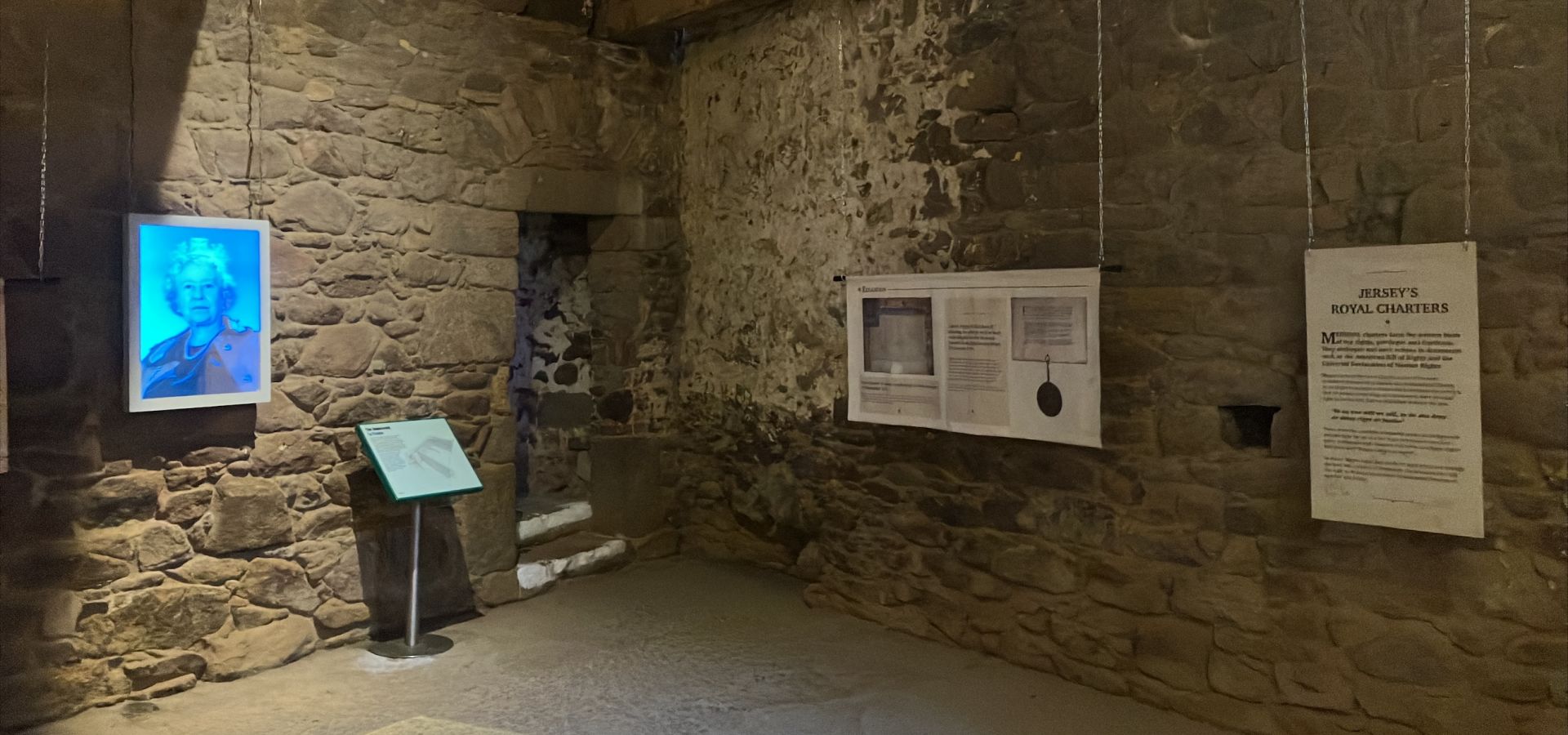 Our 'Jersey Royal Charters' banner exhibition is in residence in the Undercroft at Mont Orgueil Castle. The castle's ancient links with the Crown make it the perfect site to explore the history of the charters granted to the island from Edward III onwards.