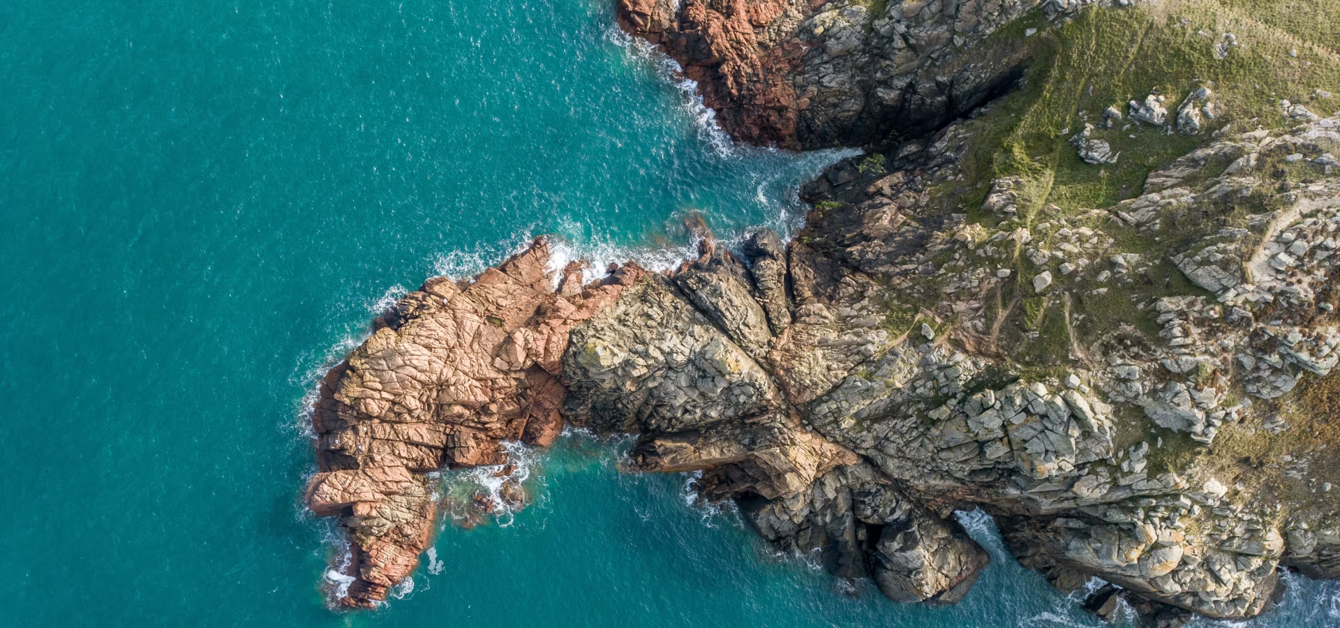 Situated next to a working quarry, this headland has a complex multistage history of moving magma. Beyond the lighthouse built in 1938, the headland stretches out into the sea in a spine of different coloured rocks.