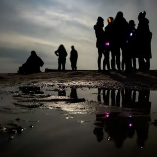 The surface will be uneven, rocky, slippery and possibly unstable as the walk moves through gravel and sandy areas. The route passes through shallow streams and tidal pools. Light will fade from dusk to full darkness during the walk. If you have any questions, please contact the organiser.